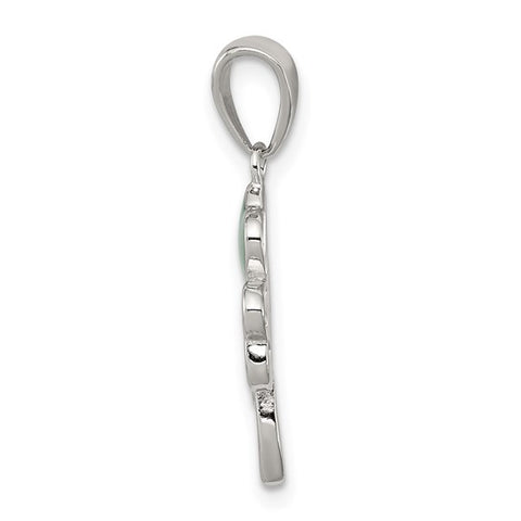 Sterling Silver Four Leaf Clover Pendant with green enamel, rhodium plated, charm measures 17mm x 11mm plus 7mm bail (24mm overall height)